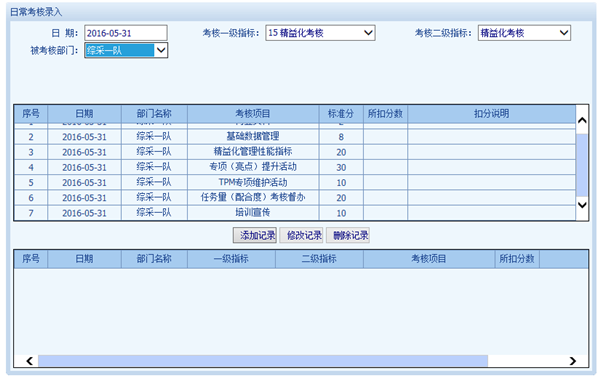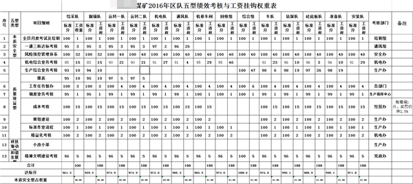 2016年1月份開始,精益化管理正式調(diào)整為一級(jí)考核指標(biāo),工資權(quán)重5%,不同單位按照專業(yè)不同下設(shè)二級(jí)指標(biāo),考慮到考核平衡性問題,不同單位根據(jù)精益化管理提升空間和考核指標(biāo)數(shù)量不同,二級(jí)指標(biāo)數(shù)量、考核指標(biāo)、二級(jí)指標(biāo)權(quán)重比例、五型績(jī)效加扣分標(biāo)準(zhǔn)有所區(qū)分。