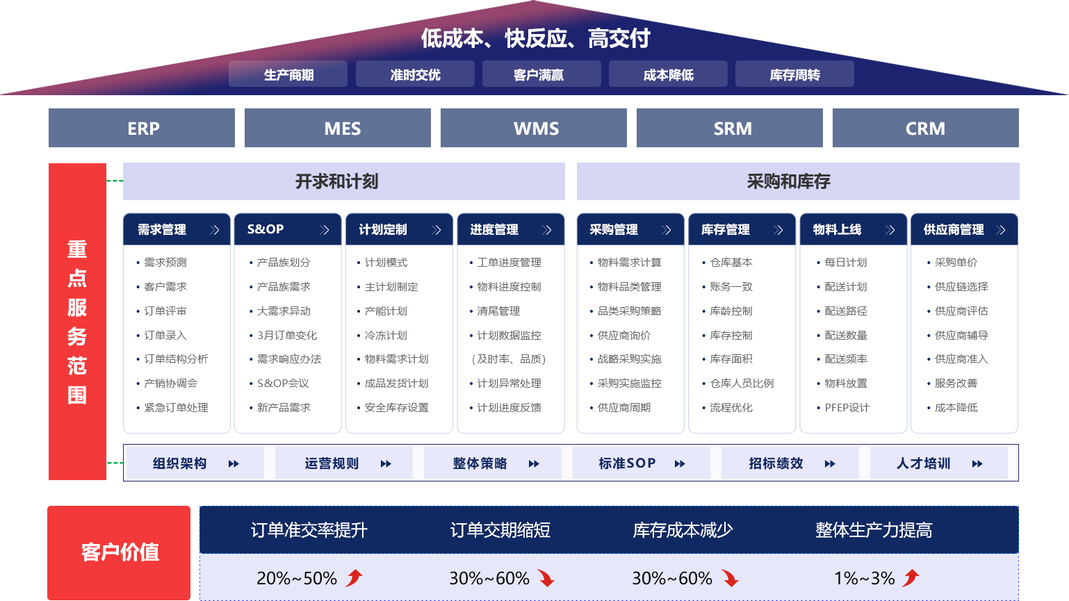 精益運營作為現(xiàn)代制造業(yè)的核心競爭力,通過LEAN精益生產(chǎn)、TQM精益質(zhì)量、SCM精益供應(yīng)鏈三大支柱,