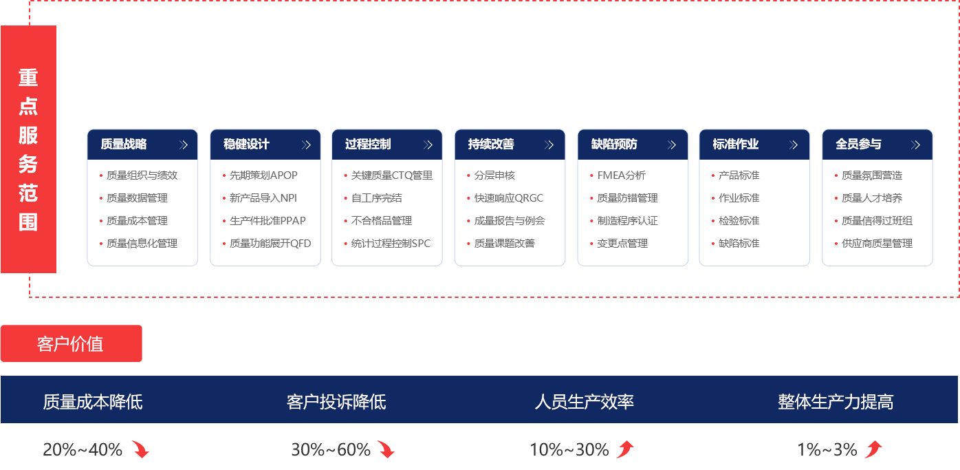 - “精益質(zhì)量咨詢”是快速搭建零缺陷質(zhì)量文化體系,突破多種管理體系并存,碎片化,落地難,“部門墻”嚴重,