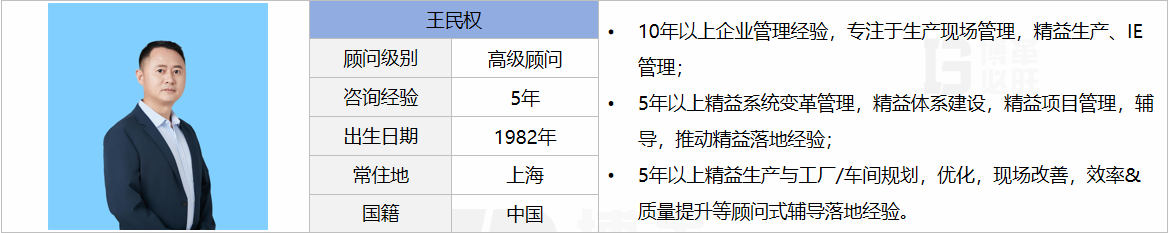 咨詢能力介紹 專注于制造行業生產現場管理、保交付、降本增效,咨詢輔導企業達20+,擅長工廠布局、車間裝修、產線設計、二次配,來料-配送-生產-入庫-出貨全流程設計;自動化立庫、WMS、MES和BI看板等數字化系統導入;精益生產推行、工藝標準化、標準工時及制造成本、人力及設備提效、去庫存、減少浪費等現場管理,經濟收益可達20%~50%。
