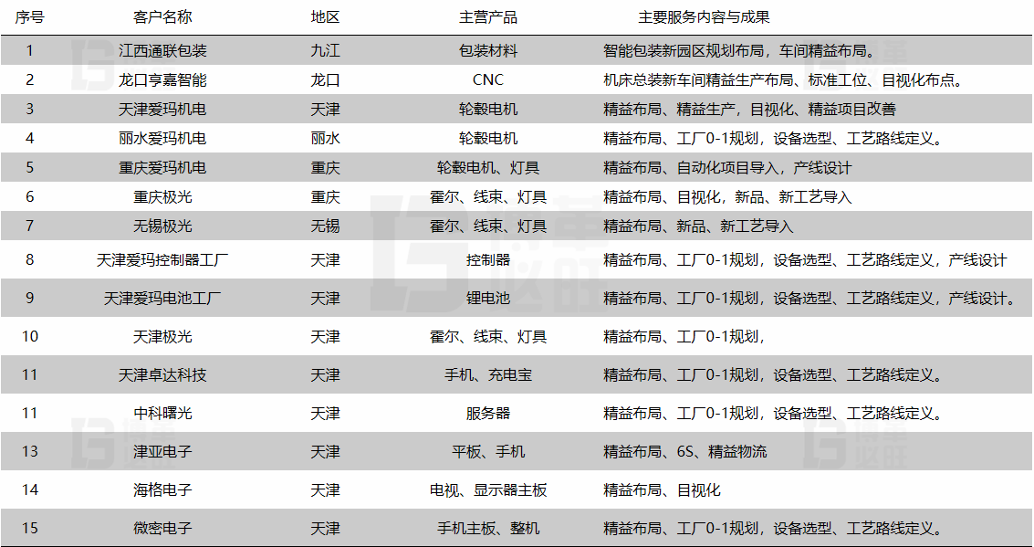 熟悉行業:精密電子,輪轂電機,工程機械,汽車、汽配、化工,裝備制造、印刷行業、機械加工、快消品行業、服裝行業等。