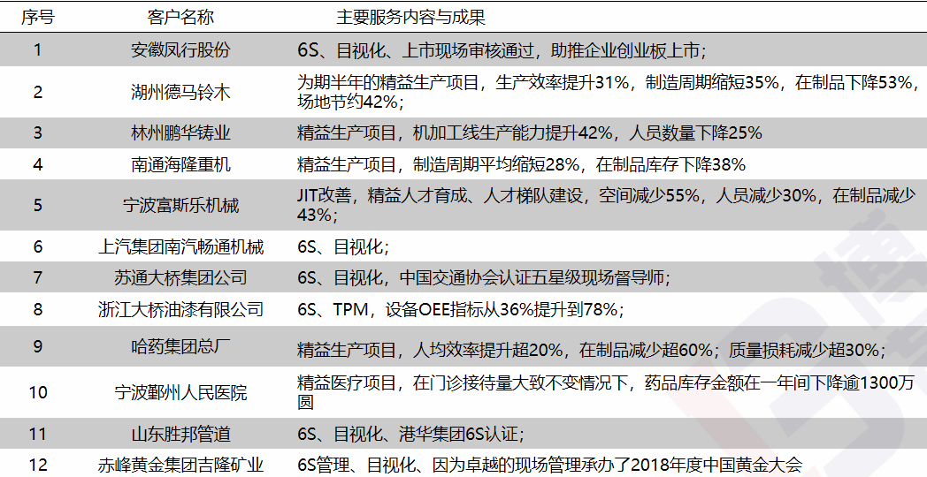 熟悉行業(yè):鑄造、鋼鐵、新材料、汽車、石油、化工、交通、機械、醫(yī)療、制藥、紡織、路橋、礦業(yè)等企業(yè)的精益現(xiàn)場管理、6S管理、TPM設(shè)備管理等;