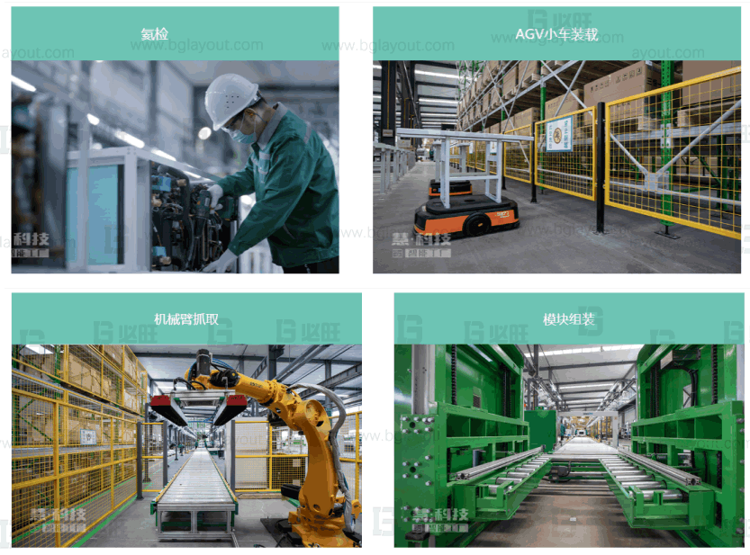 采用模組式作業模式,由小部裝單元和整機裝配單元組成,實現柔性生產、保證工廠人均產值高效產出。