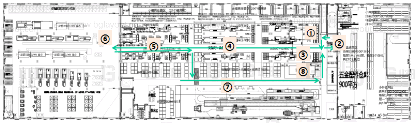 參觀路線與景點布置:1. 一共布置8個參觀點,可以根據不同客戶的需要帶客戶去了解; 2. 參觀路線不唯一,每個景點展示物不同。