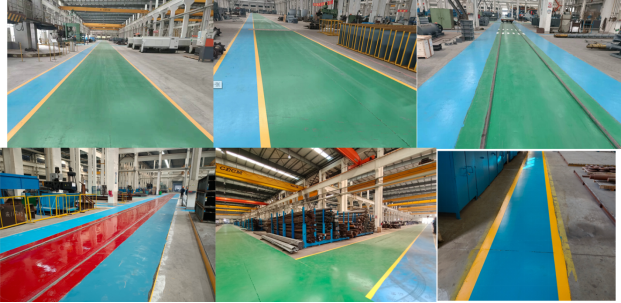 按照工藝物流順序優(yōu)化工廠布局,減少交叉作業(yè);2.模擬整體劃線效果圖;3.依據(jù)參觀及新車間要求重新優(yōu)化裝配車間和冷作車間。