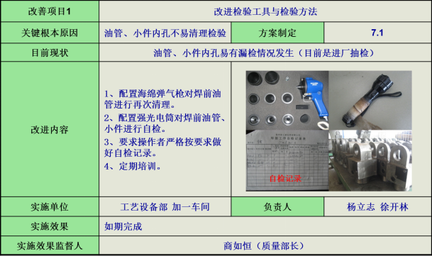 4)油管、小件檢驗(yàn),針對油管、小件內(nèi)孔不易清理檢驗(yàn)問題,改進(jìn)檢驗(yàn)工具和檢驗(yàn)方法,避免漏檢情況發(fā)生。