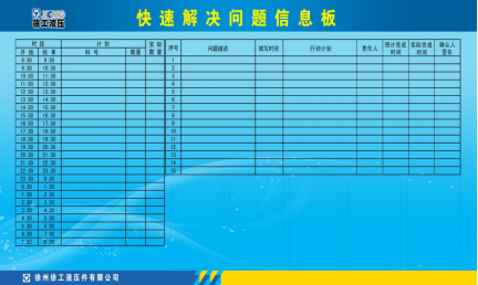 7)快速響應機制:通過車間現場快速響應流程與生產責任會議相結合,建立“快速解決問題信息板”,快速解決生產問題。