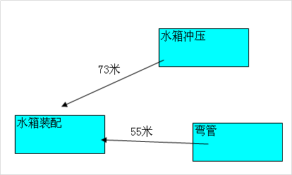 分析鋁水箱車間物流示意圖發現,鋁水箱沖壓至裝配工序物流距離73M,彎管工序至裝配車間55米。且存在多點分散生產、搬運距離長;生產信息溝通不便,在制品多;生產面積沒能合理利用等問題,因此重新調整生產布局,簡化物流路線。