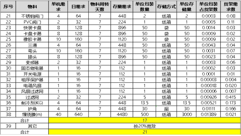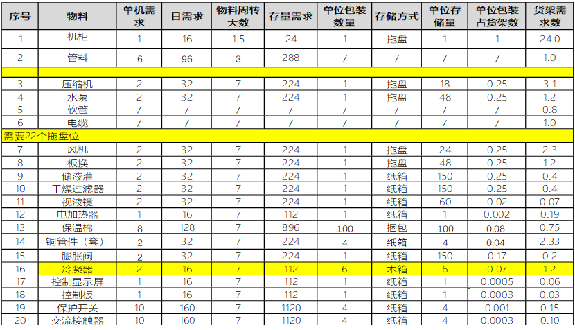 倉庫庫位需求測算: