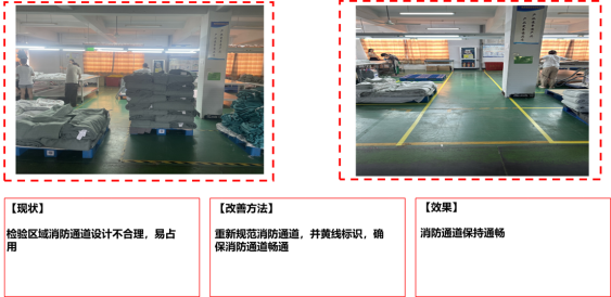 隨后,對所有物品實施“三定”管理:定置(確定存放位置)、定容(明確容器和容量)、定標示(標識清晰易辨)。通過系統(tǒng)整頓,不僅優(yōu)化了工作流程,還大幅提高了物料和工具的取用效率。全員積極參與改善活動,累計完成現(xiàn)場改善500項,包括工具擺放合理化、通道暢通化、區(qū)域功能明確化等,為后續(xù)6S深化打下了堅實基礎(chǔ)。