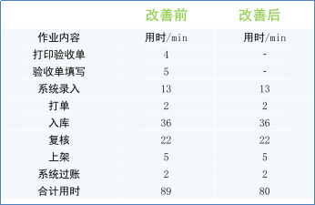 【注:入庫工時=系統操作+打印單據+揀配+復核+上架+過賬】