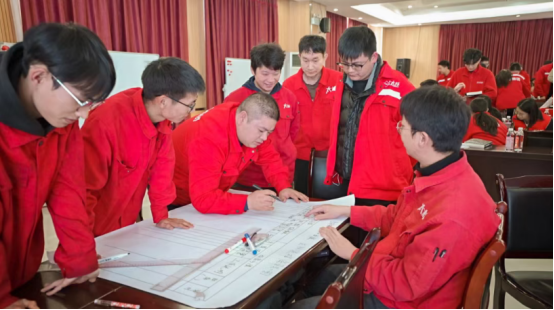 在“精益生產概述”模塊,熊霆老師避免理論說教,而是結合金牌班組4班四期培訓成果,講解“精益=持續改善+全員參與”的核心邏輯。他用“太標案例復盤”讓理念落地:回顧“設備TPM管理”培訓后,太陽能車間設備停機率從8%降至3%;“質量管控”培訓后,鑄造車間不良率下降40%,證明“精益不是口號,是可落地的方法”。針對班組如何推進精益,他提出“三個一”行動:“每日一個小改善(如減少一次搬運)、每周一次小復盤(班組會總結改善效果)、每月一個小成果(固化有效措施)”。培訓最后,學員分組制定“班組精益推進計劃”:數控班組計劃“每月開展‘效率提升小競賽’”;太陽能班組計劃“建立‘改善積分制’,積分可兌換獎勵”。這些計劃均被納入太標集團“基層精益推進臺賬”,確保培訓成果長效落地。