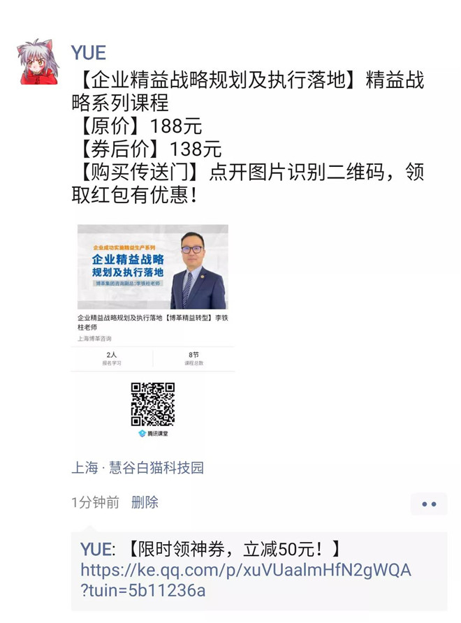 3. 課程海報加課程介紹推送到朋友圈(可附帶優(yōu)惠券鏈接)