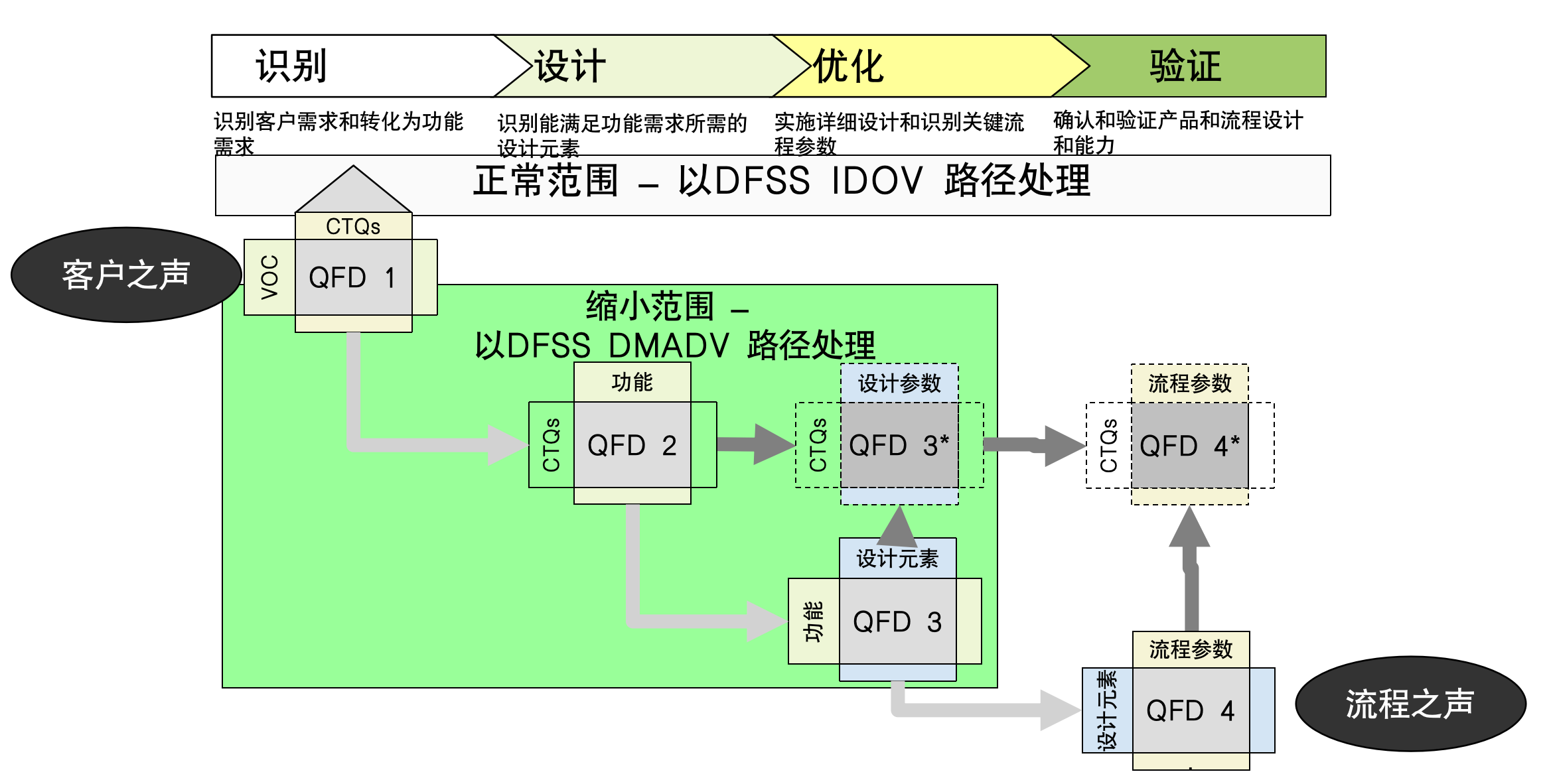 DFSS 的DMADV 路徑以關鍵CTQ 為骨干, 將客戶關注的問題, 作出分析, 生成改善概念并作出驗證, 確保能達到客戶對這個問題的要求