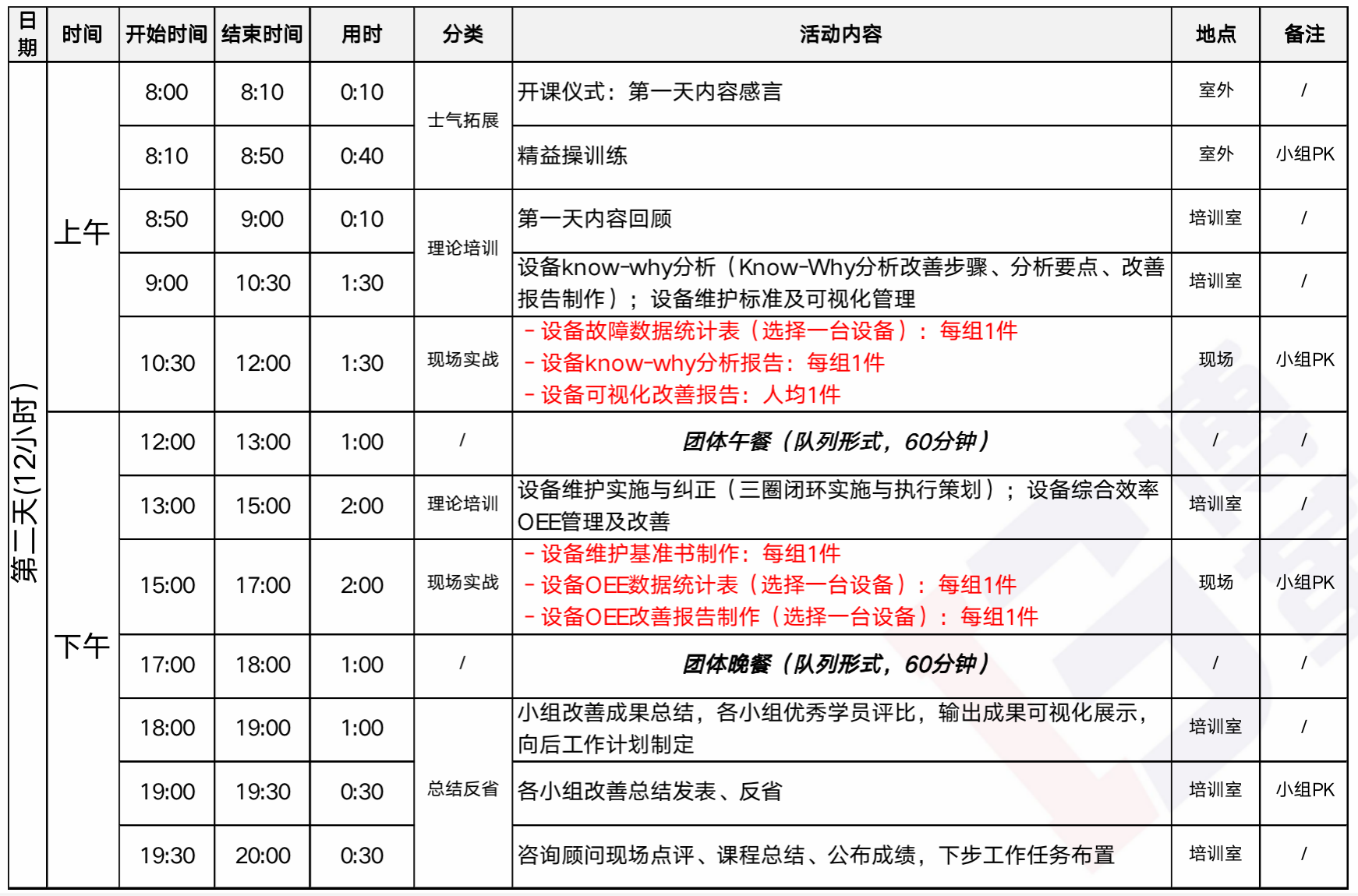 主題性:每次培訓會根據企業的需求選擇不同的主題,包含但不限于:現場5S、TPM、標準作業、六源改善、質量改善、快速切換、產線平衡、工位布置、浪費識別與改善、QC/IE工具應用等